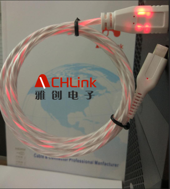 下面这款就是最近打样出来的发光数据线,客户非常满意,已经量产。