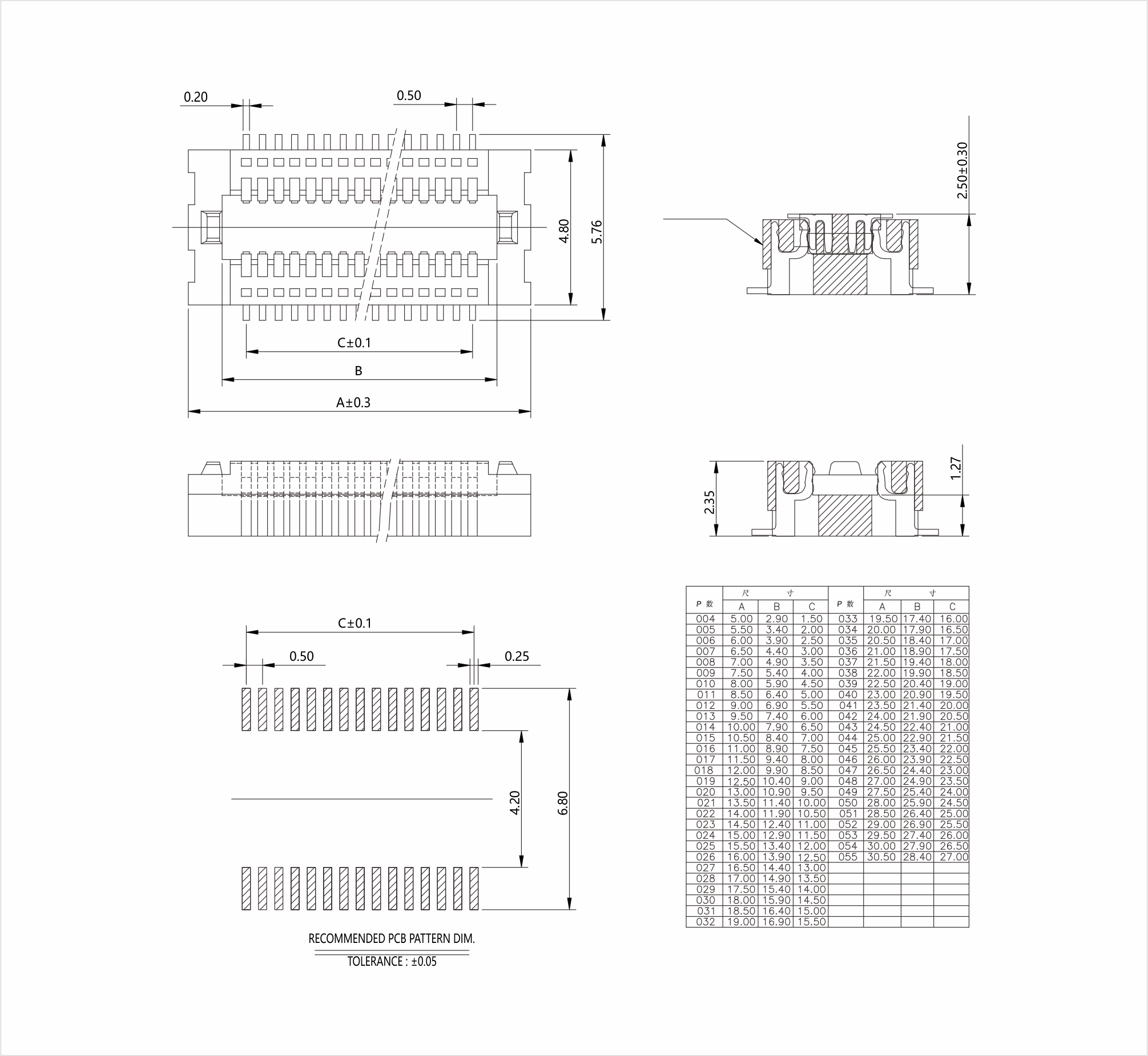 0.5mm BTB单槽公座(BB152-C35-2DR6)